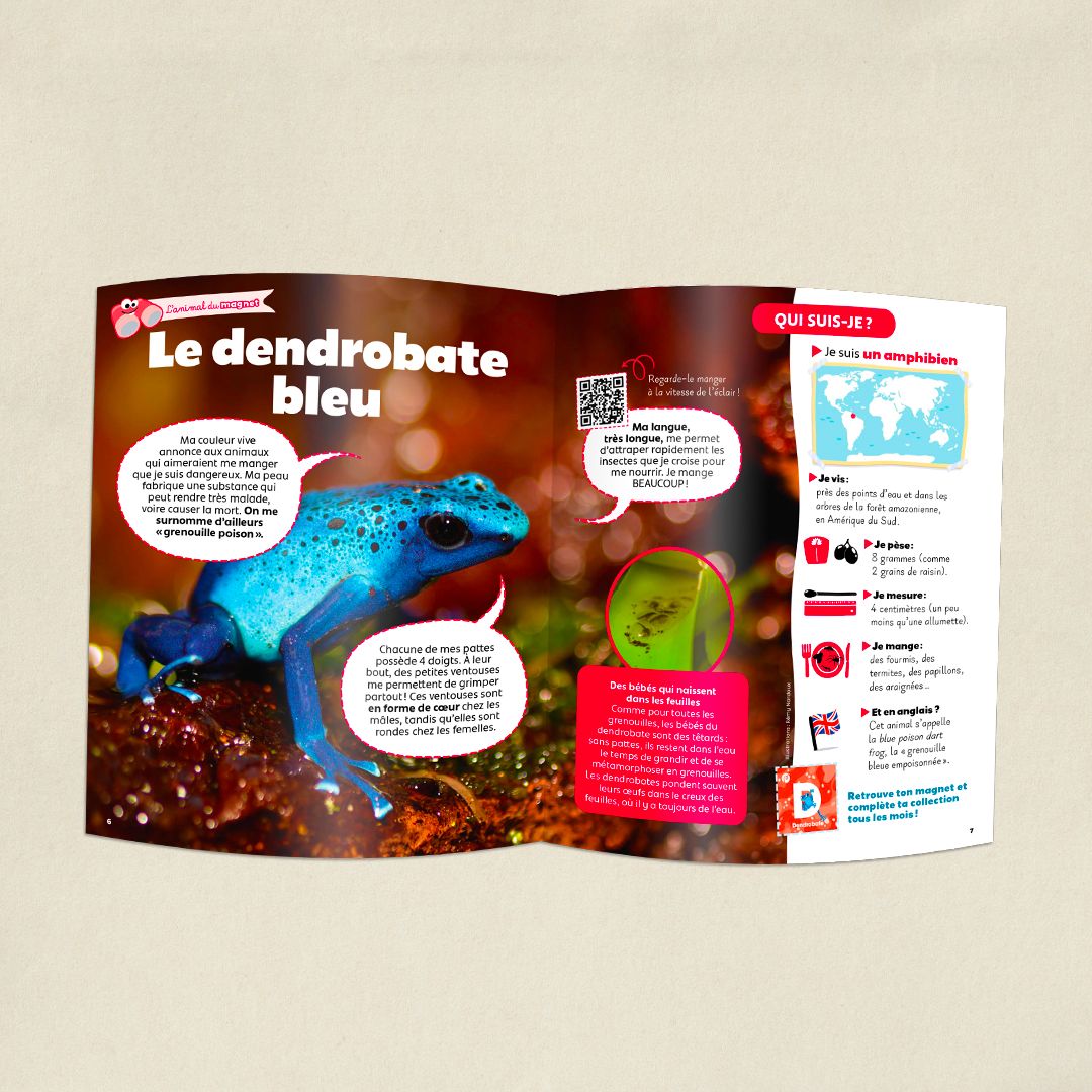 Dans le magazine, découvre tous les secrets des chats : leur vision nocturne, leur anatomie incroyable et même leur langage ! Et plein d’autres rubriques amusantes : on t’explique comment on fait un dessin animé, on te fait découvrir des abeilles surprenantes et bien sûr l’histoire de Bamboo !