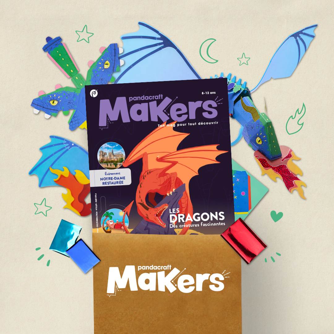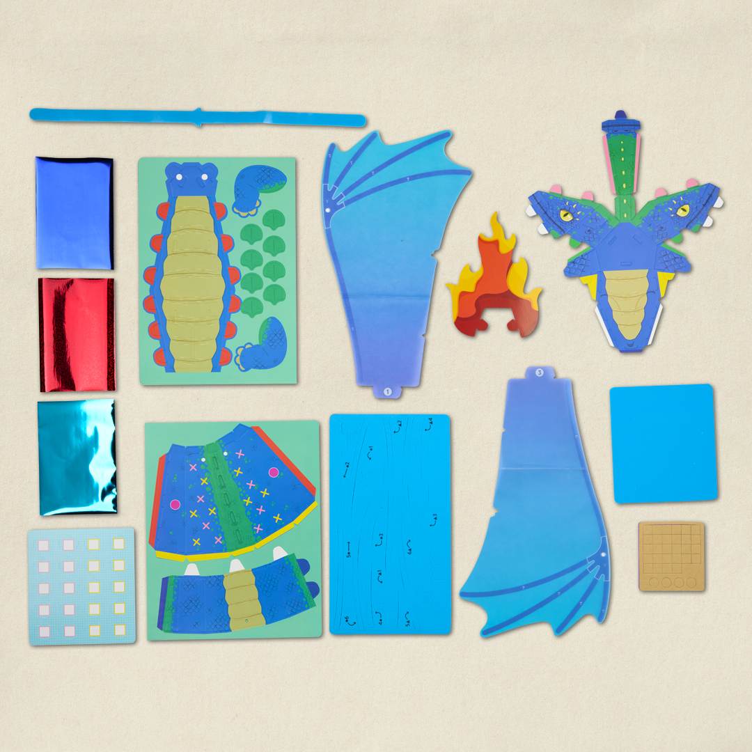 Fabrique ta magnifique maquette de dragon aux écailles métallisées et aux ailes translucides, puis attache-la sur ton bras pour la faire voler ! Pars à la rencontre de ces créatures de légendes, découvre leurs symboliques et leurs apparences variées. Quel dragon es-tu ? Fais un test de personnalité pour le savoir !