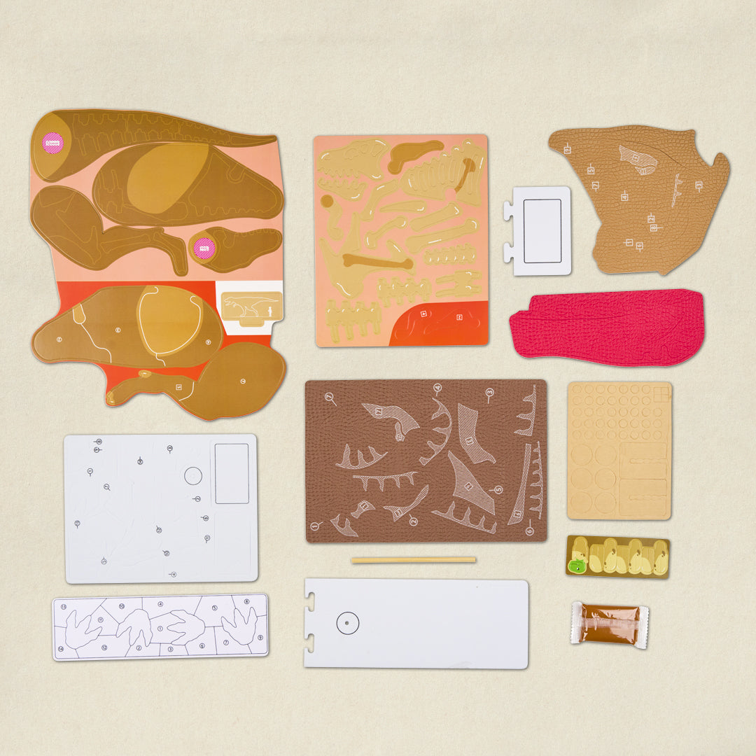 Fabrique une maquette de T-rex comme au musée ! Assemble son squelette d’un côté, ajoute sa peau écaillée de l’autre côté, et réalise des traces de pas de T-rex en les moulant ! Place ton dino sur un support et expose ta maquette comme dans un véritable musée !